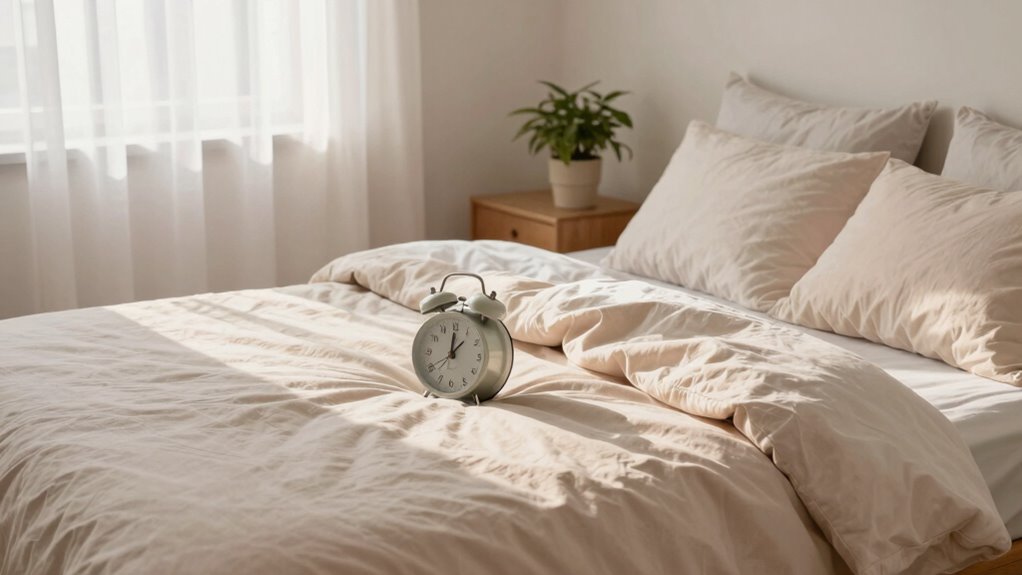 Additionally, light exposure at the right time can enhance your circadian rhythm, promoting better sleep quality over time. Incorporating consistent sleep routines can further optimize the effectiveness of light-based wake-up methods. Consistent routines support healthy sleep habits, which are essential for a natural and refreshing morning wake-up. This approach helps reduce cortisol spikes and sleep inertia, making mornings more manageable and waking up feeling refreshed. Properly timed light exposure aligns with your natural rhythms, easing the transition out of bed.