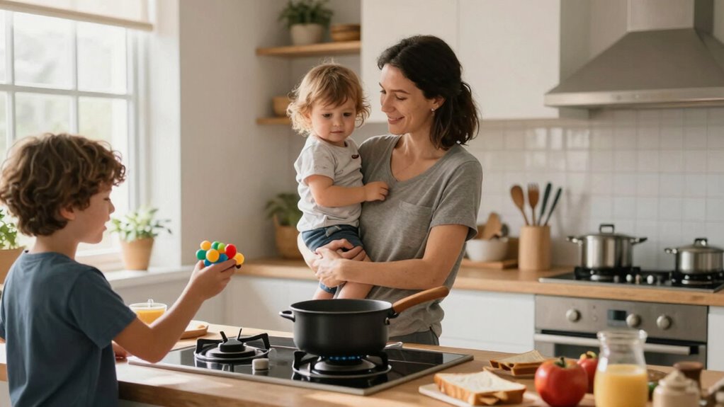 Managing stress and preventing caregiver burnout are essential skills when you’re balancing the demands of caring for your kids and others. To build emotional resilience, prioritize self-care and recognize your limits. Effective time management helps you allocate moments for rest and recharge, reducing overwhelm. Remember, it’s okay to ask for help; you don’t have to do everything alone. Incorporate these strategies:
