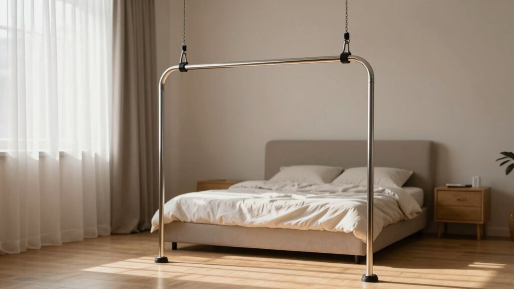 Designed to enhance mobility, trapeze bars are essential aids for individuals with limited physical capabilities. These devices offer impressive trapeze functionality, allowing users to shift positions in bed or rise with greater ease. By grasping the bar, you can pull yourself up or reposition your body, which greatly boosts independence. This not only empowers you but also provides vital caregiver assistance, reducing the physical strain on those who help you. With the right setup, trapeze bars can transform daily routines, making them smoother and less taxing for everyone involved. Whether you’re recovering from surgery or managing a chronic condition, these bars serve as a practical solution to improve mobility and enhance overall quality of life.