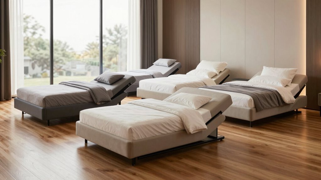 A solid warranty can make all the difference when you’re investing in an adjustable bed base with a zero gravity feature. Typically, you’ll find warranties ranging from 5 to 10 years, covering any manufacturing defects and ensuring long-term reliability. I’ve noticed that many of these bed frames are rigorously tested for up to 30,000 lift cycles, which really speaks to their durability. Look for heavy-duty steel construction that supports weight capacities between 750 to 900 pounds; this indicates a robust design. Features like rust-resistant hardware and whisper-quiet motors not only enhance longevity but also boost user satisfaction. Plus, tool-free assembly options can prevent damage during setup, ensuring a more reliable product over time.