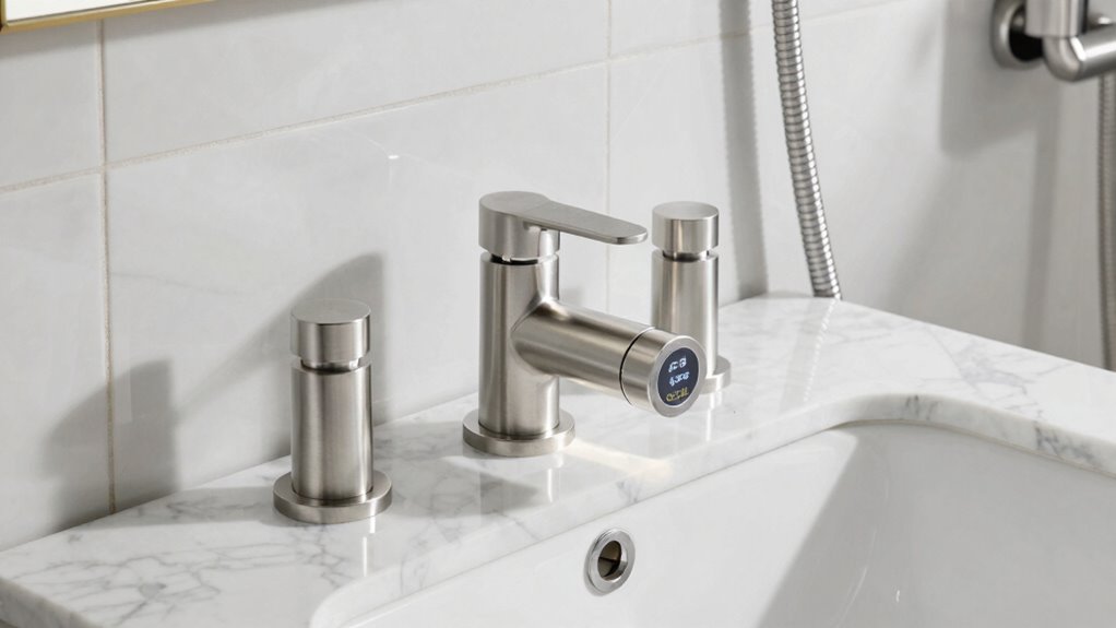 Flow rate options directly impact how satisfying and efficient your shower experience will be, so it’s important to select a valve that matches your water pressure and usage needs. Flow rates are measured in gallons per minute (GPM) and determine how much water is delivered during your shower. Higher flow rates, like 2.5 GPM, offer a powerful shower, especially in areas with low water pressure. Lower flow rates, around 1.5 GPM, help conserve water and energy, making them ideal for eco-conscious setups. Many thermostatic valves include adjustable flow controls, allowing you to customize water pressure to your preference. Choosing the right flow rate guarantees a comfortable shower, reduces water waste, and keeps you compliant with local regulations.