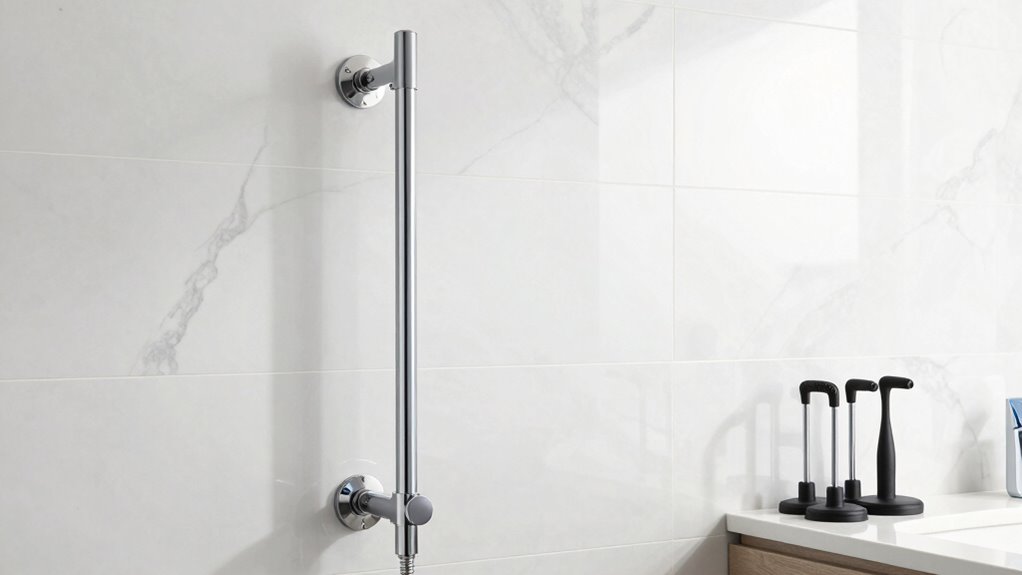 Choosing a floor-to-ceiling transfer pole requires careful attention to its adjustability features, as these directly impact safety and ease of use. Most adjustable poles fit ceiling heights from 7 to 10 feet, making them suitable for most homes. The height adjustment mechanisms typically involve support tubes and screw systems that allow secure customization without tools or permanent fixtures. Clear measurement indicators or locking mechanisms ensure precise height settings, enhancing stability. For rooms with sloped or vaulted ceilings, the angle adjustment capability—usually up to 45°—is essential for proper support. A good adjustable pole also offers quick and secure height changes, making it easier to reposition for different users or room layouts. Prioritizing these features guarantees safety, convenience, and versatility in use.