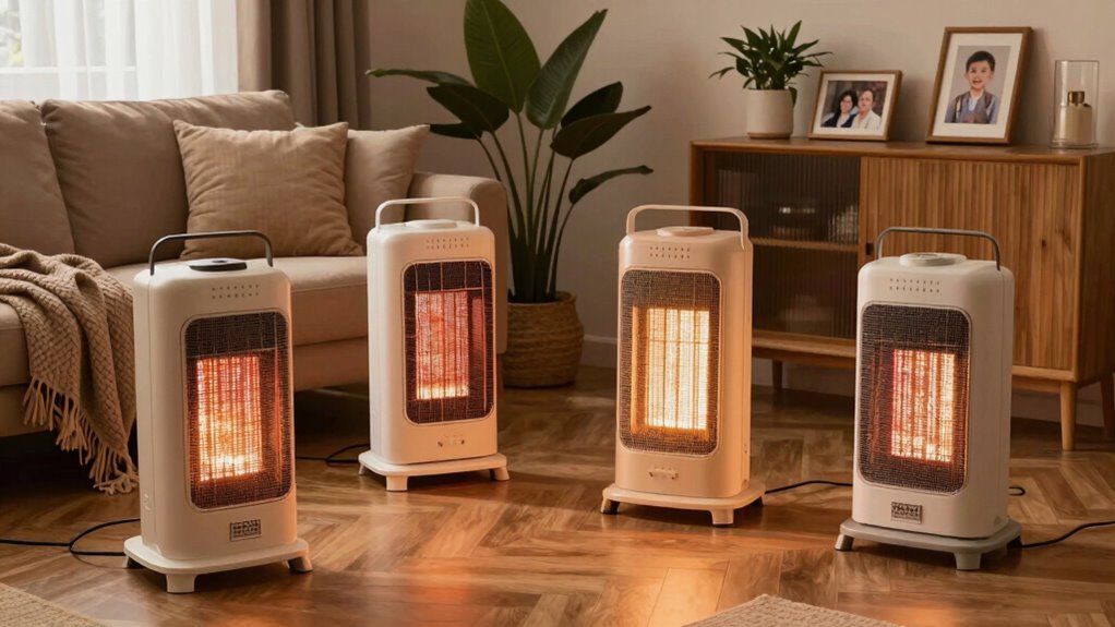 - Look for infrared heaters with quick heating capabilities, covering at least 200 sq. ft. for effective warmth in seniors’ living rooms.