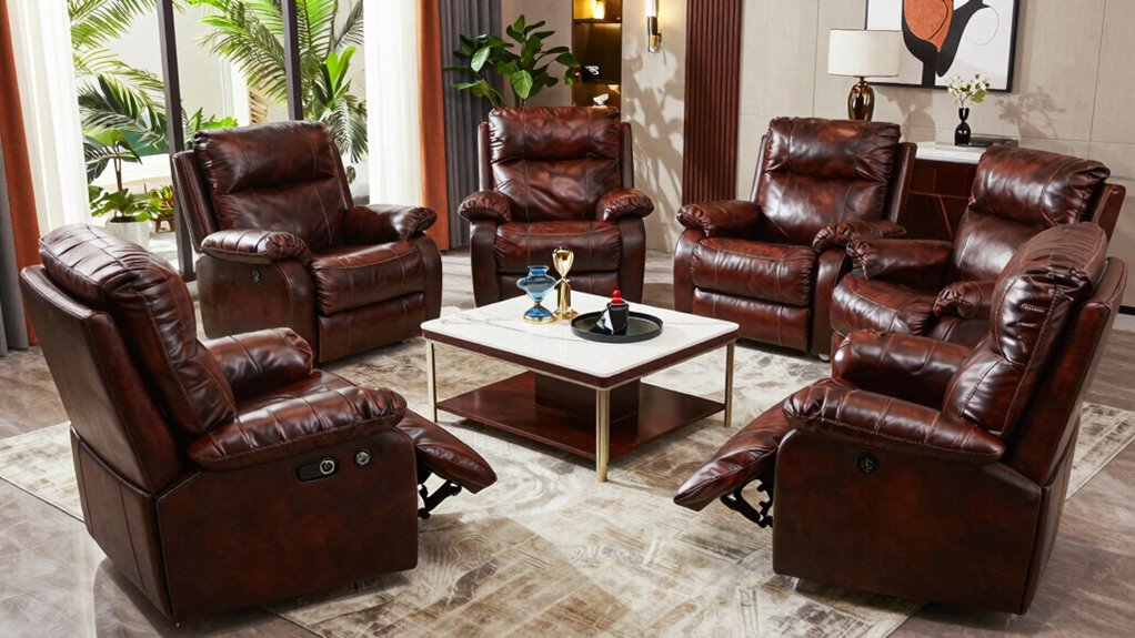 When I first sat in my leather lift chair, I felt like royalty. Most recliners typically support between 250 to 350 pounds, but some heavy-duty options can handle over 500 pounds. It’s vital to check the specifications before buying to guarantee it suits your needs. I always keep this in mind, as comfort and safety are my top priorities. So, don’t hesitate to ask about the weight limits when shopping!